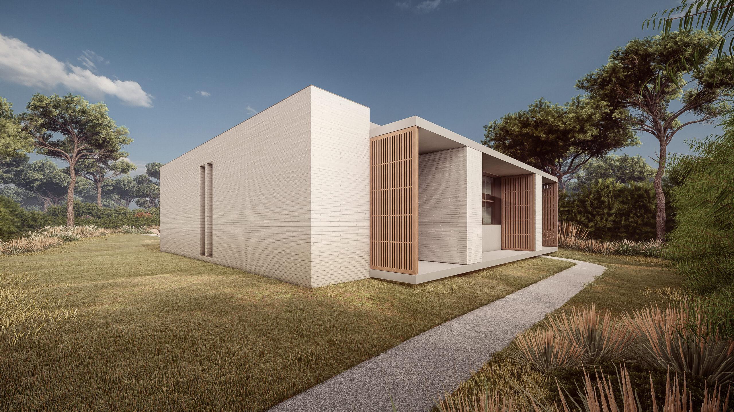 O projecto de arquitectura, desenvolvido pelo gabinete RRJ ARQUITECTOS, destaca-se não só pela qualidade estética como pela qualidade construtiva e dos materiais selecionados, nomeadamente: o tijolo maciço branco, o betão aparente, portadas exteriores em madeira e caixilharia com corte térmico e vidros duplos.