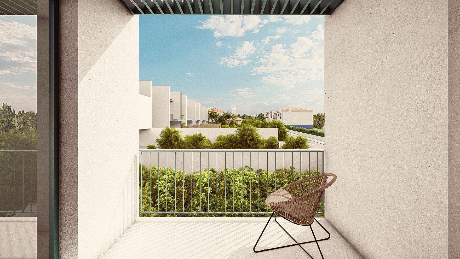 O verde é uma constante em todo o empreendimento, integrando-se harmoniosamente na paisagem. Os espaços exteriores são organizados em torno de percursos envoltos em vegetação, proporcionando privacidade aos residentes e vistas deslumbrantes do interior.
